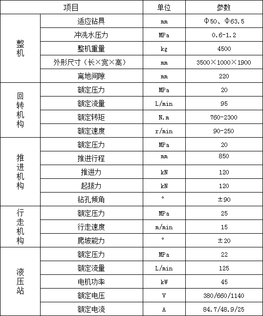 1. 履帶行走,大大提高移鉆、穩鉆的效率,顯著減輕工人的體力勞動強度;